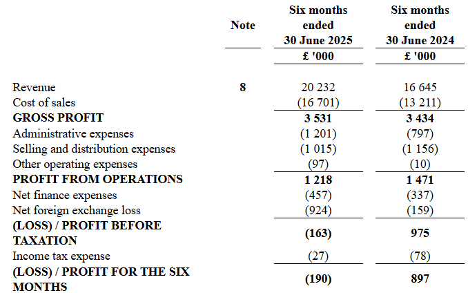 Операционная прибыль составила 1,2 млн фунтов, что на 18% меньше, чем в январе – июне 2024 года.