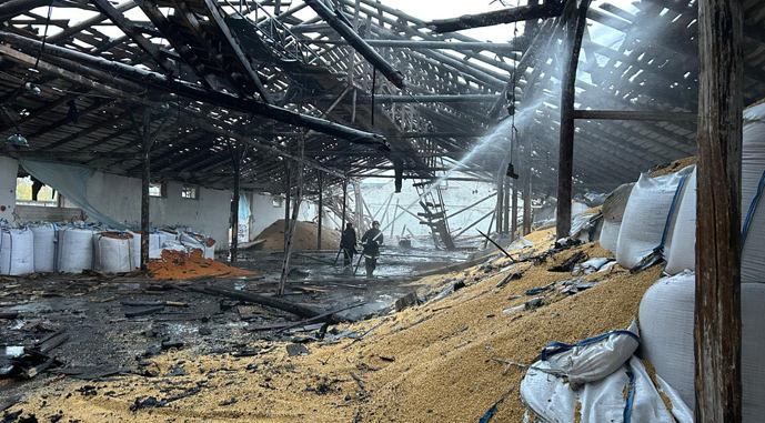 «Попадание произошло по одному из помещений аграрного предприятия, где хранилось зерно», — уточнил он.